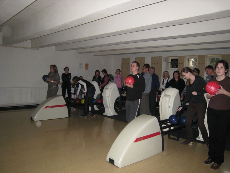 Po oficiálnej časti tohto stretnutia nasledovala „športová“ časť – zahrali sme si bowling. Napriek tomu, že mnohí túto hru nepoznali, myslím, že každý sa dobre pobavil. Poďakovanie za túto veľmi vydarenú akciu patrí p. doc. Tranžíkovi a p. doc. Vondrákovej, najmä za výborný nápad a jeho realizáciu.